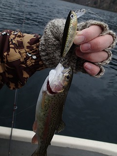 埼玉のNさんが某湖へ遊びに行ってSD5.5でニジマスちゃんを釣ってきてくれました。